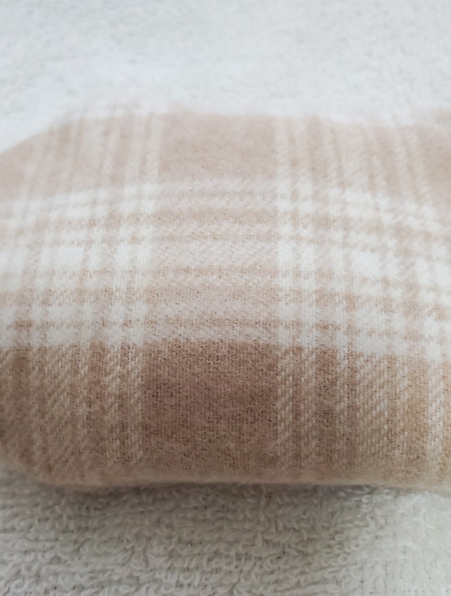 茶と白の起毛素材の肌触りが最高に柔らかい 厚みのある綿のネル生地です。